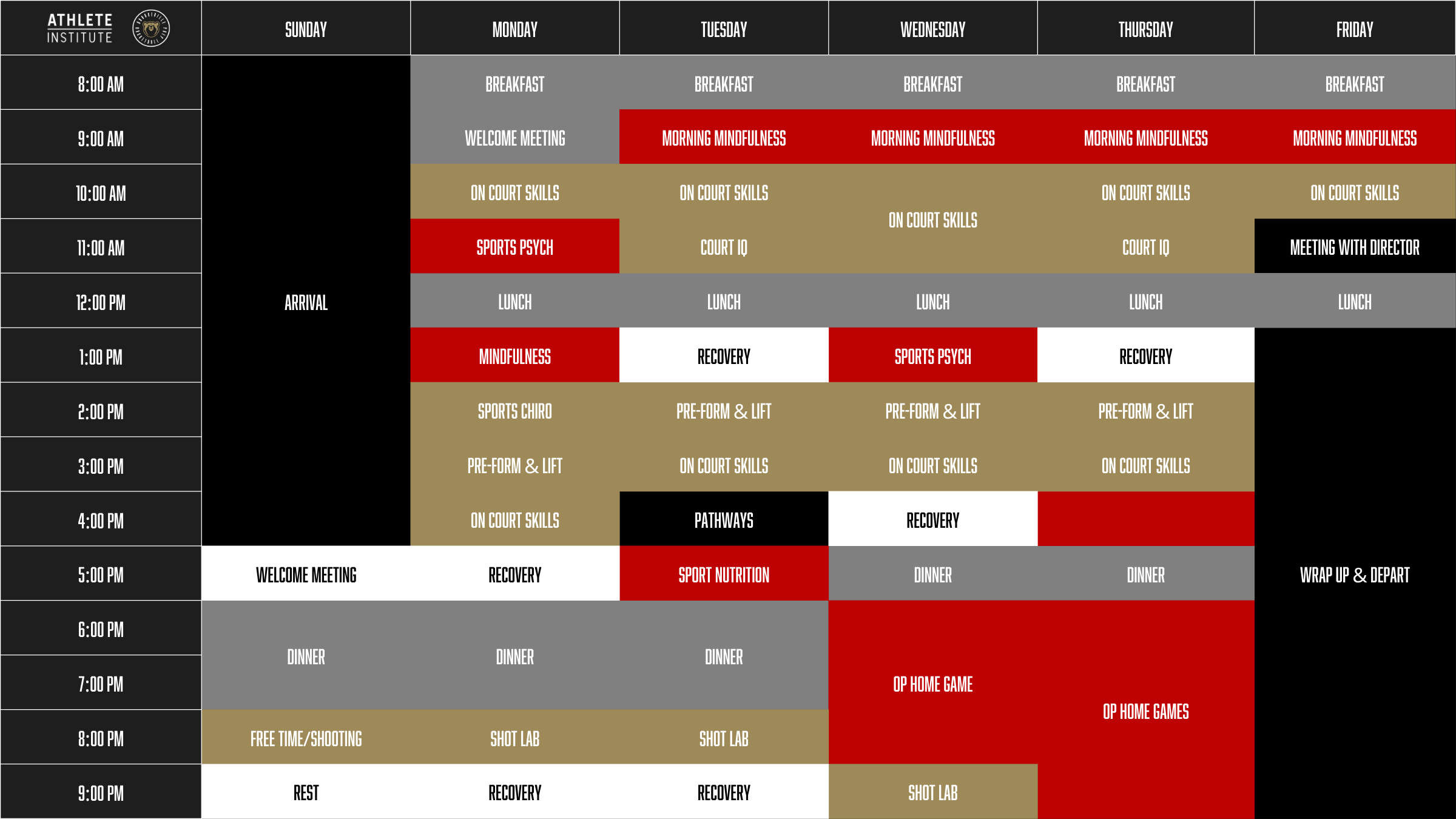Please note: If there is a circumstance in which a refund is applicable, Athlete Institute will either keep the initial non-refundable deposit or 35% of the total cost of the camp package, whichever is of greater value.